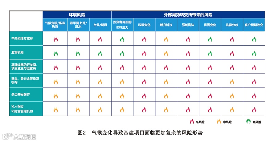 经合组织(OECD)于2019年6月发布的“OECD关于优质基础设施对环境及社会因素考量的参考文件”中,提纲挈领地论述了将环境因素纳入基础设施投融资决策的重要意义:“有关基础设施开发项目的地点、类型、设计和时间选择的决定,可能对环境产生深远影响。劣质的基础设施项目会造成空气污染、气候变化、水质及水量发生变化、生物多样性丧失以及生态系统退化等一系列严峻问题。在基础设施的规划和设计中考虑环境因素,可帮助基建项目在生命周期内避免、尽量减少和减缓由洪水、山崩、火灾、地震和热浪等环境危害所构成的风险,从而提高服务供给的可靠性、延长资产寿命并保障资产回报。”这很好地解释了为什么目前投资人和融资方在评估项目时非常重视气候变化的问题,并要求项目制定计划来妥善管理与气候变化相关的风险。