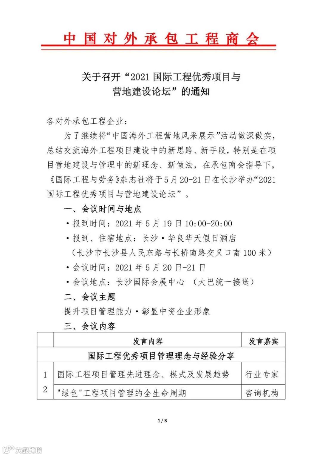 关于召开“2021国际工程优秀项目与 营地建设论坛”的通知