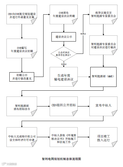 3.编制年度建设决议初稿。在规定期限内, CNE通过决议发布年度输电建设规划的初步技术报告,并进行公示,公示结束后发布年度建设决议终稿。