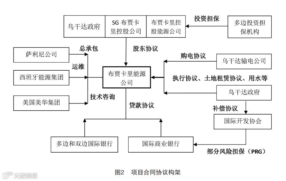 项目公司与乌干达政府签订了执行协议、土地租赁、用水等合同,与输电公司签订了售电合同,与建设运营单位签订了专业合同,形成涵盖各方的合同体系,并设置了合理的风险分担及处置机制。具体协议详见图2。