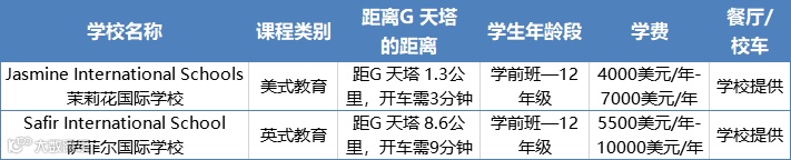 周围遍布小学、初中、国际高中、大学共6所,教育资源十分丰富,教育质量非常优越,可以提供美式教育、英式教育、剑桥国际课程、IB课程、加拿大课程等等,小编将距离社区最近的两所国际学校给大家整理了非常详细的信息。