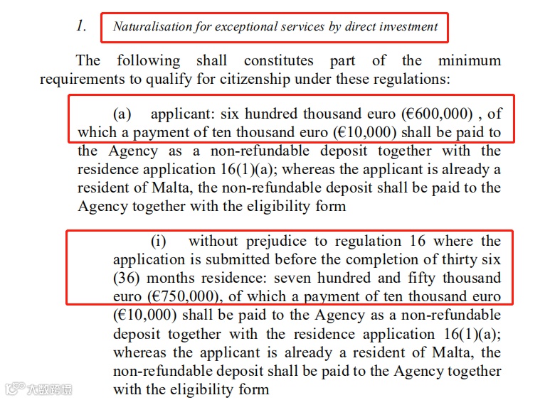 在身份文件签发前,承诺捐款1万欧元到马耳他当地的慈善、文化、体育、科学、艺术、动物保护或非政府组织等机构。