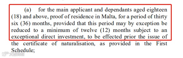 申请人及18岁(含18岁)以上附属申请人,持马耳他居留卡满3年(捐款额度为60万欧元);
