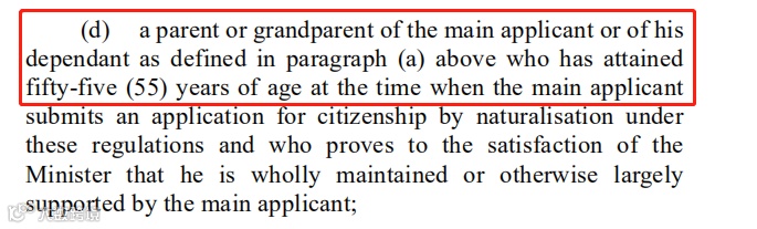 年满55周岁,经济依赖于主申请人的父母或祖父母;