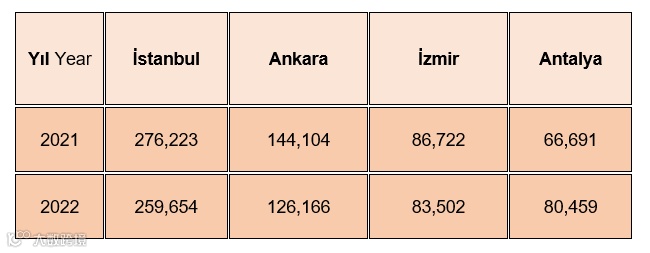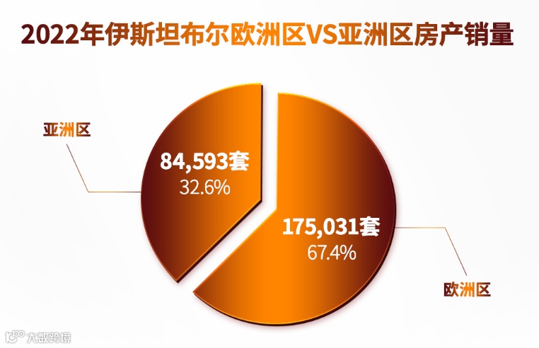 伊斯坦布尔近年来房地产市场持续火爆交易量持续上涨。2022年,伊斯坦布尔房产销量达25.9万套。其中,伊斯坦布尔欧洲区共售出175,031套房产,亚洲区共售出84,593套房产,欧洲区占比67.4%,亚洲区占比32.6%,欧洲区的房产交易量是亚洲区的两倍多,可见,无论本地人还是外国人都更倾向于投资欧洲区。