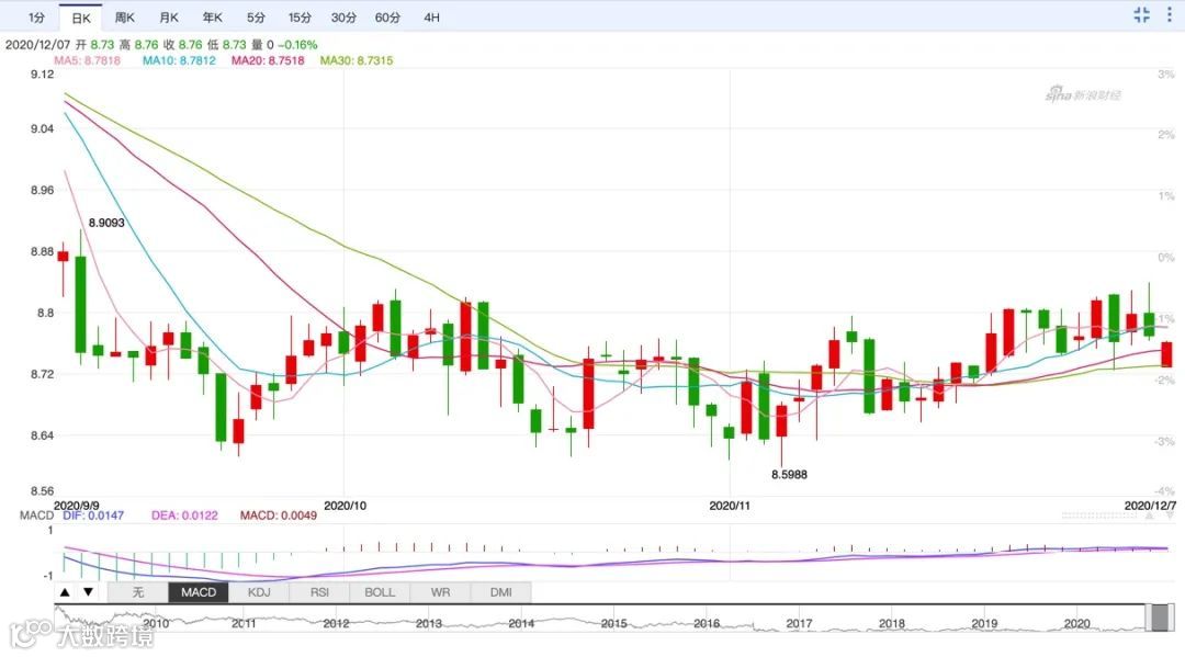 英镑兑人民币上周出现小反弹,最终止步于20日线的8.6到8.8之间,但是受脱欧负面消息影响,12月7日周一早上,英镑兑美元跌至1.32,兑人民币跌至8.66,创六周以来最低。