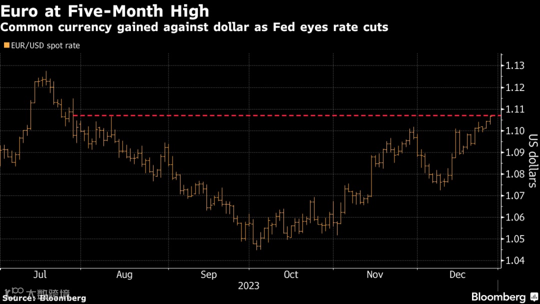 (欧元VS美元汇率走势 来源:Bloomberg)