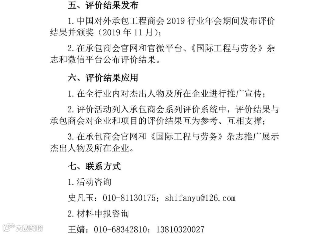 2.在承包商会官网和官微平台、《国际工程与劳务》杂志和微信平台公布评价结果。