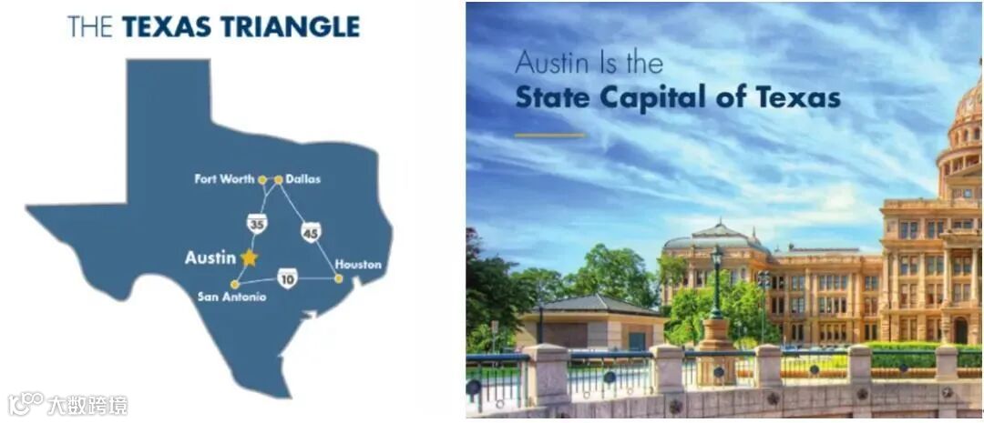 奥斯汀正好位于“德克萨斯黄金三角区”的中间,该区域是通过在达拉斯-沃思堡、休斯顿和圣安东尼奥之间绘制一条假想线而形成的。该地区 2015 年人口为 1814 万,预计到 2030 年将增长到 2165 万,是德克萨斯州和美国南部的经济最强区域。