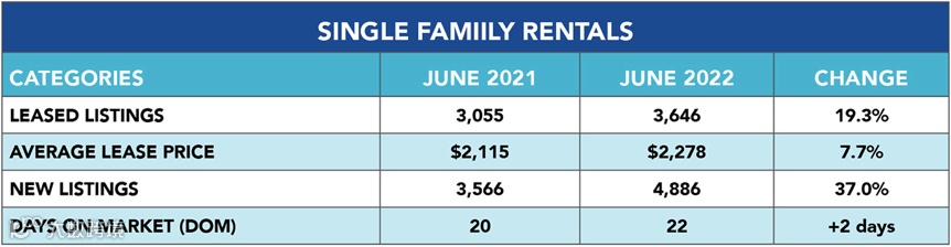 6月休斯敦独栋别墅租赁市场繁荣发展,租金大幅上涨。根据休斯敦房地产经纪人协会6月的数据,独栋别墅租金同比上涨19.3%,平均租金上涨7.7%,高达2278美元/月的历史新高。新签约的租赁合同总共为3646份,同比去年同期上涨19.34%。新挂牌出租的独栋别墅激增37%,为火爆的租赁市场提供有力的支撑。