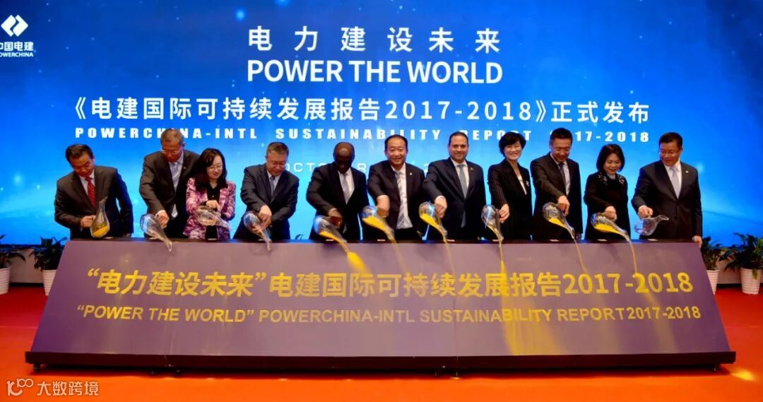 发布会上,到场嘉宾共同上台启动装置,正式发布《电建国际可持续发展报告2017-2018》。
