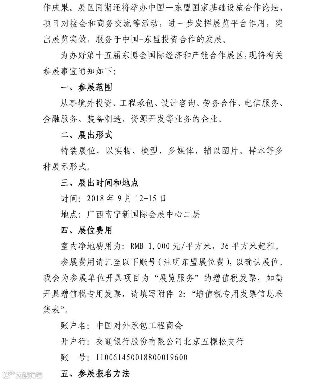 为办好第十五届东博会国际经济和产能合作展区,现将有关参展事宜通知如下: