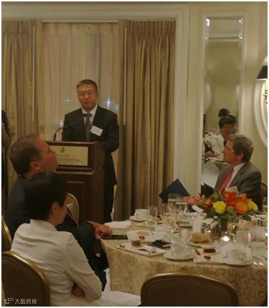 中午,卡特彼勒公司在陆军海军俱乐部设招待午宴。华盛顿国际商业理事会主席麦克德米特和副主席詹姆斯分别就特朗普执政时期中美经贸关系及美国与东亚经贸关系、美国对华贸易政策等问题做了主旨发言,并解答了与会嘉宾提出的相关问题。