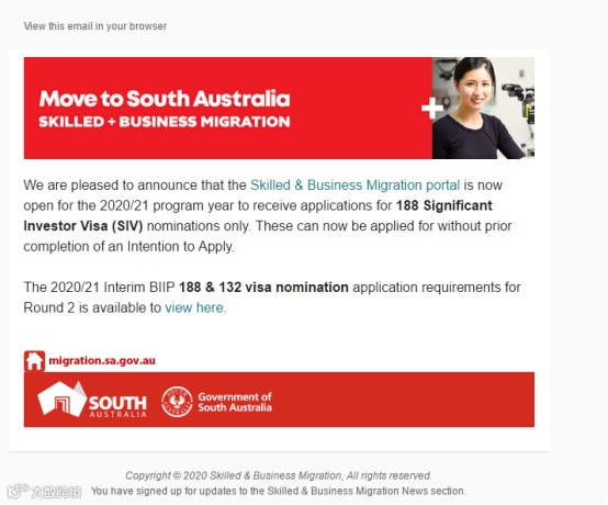 南澳政府同时也公布了第二轮临时配额州担保要求,对于其他188类签证申请人及132签证,仍需要完成EOI和意向申请,并且需要在澳洲时间11月23日晚上11:59之前完成相关申请步骤。一旦南澳州政府对于意向申请及EOI满意,将会向申请人发出州担保递交邀请。邀请将会在11月24日(星期二)到12月4日(星期五)期间发送,申请人需要邀请发送日起10个工作日内递交州担保申请。