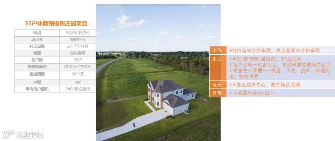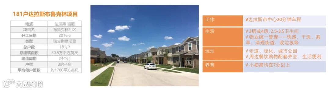 达拉斯布鲁克林项目是我们开发第一代租赁型别墅产品,是 我们第一代测试市场的项目。我们的主要租户客群85%都是带孩子的家庭,他 们居住在我们社区的原因是我们的房子新,物业管理完善,房子空间大,布局 符合租户的要求。