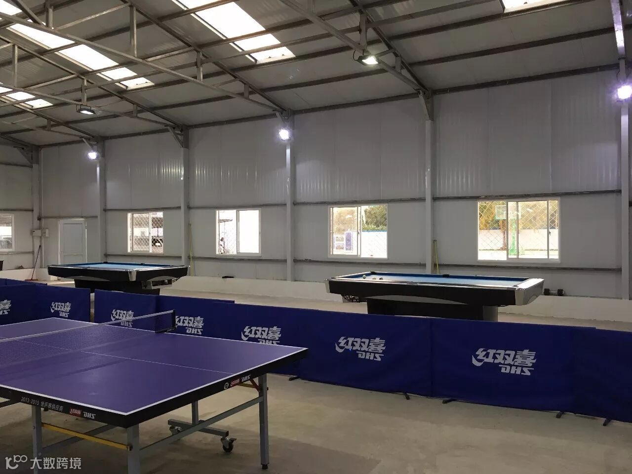 营地建有一座240平方米轻钢结构体育馆,内部配备台球桌2组、乒乓球桌2组以及部分健身器材,能够满足员工室内体育活动需求。