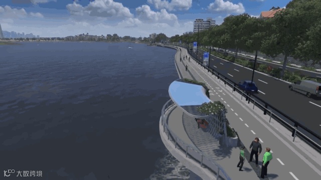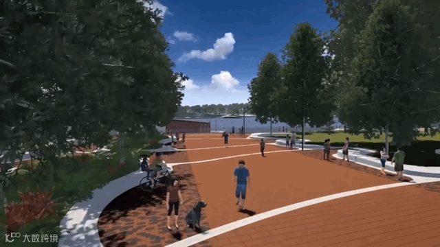 项目楼下的沿河开设的人行道和自行车道,保证全新绿色健康的出行。