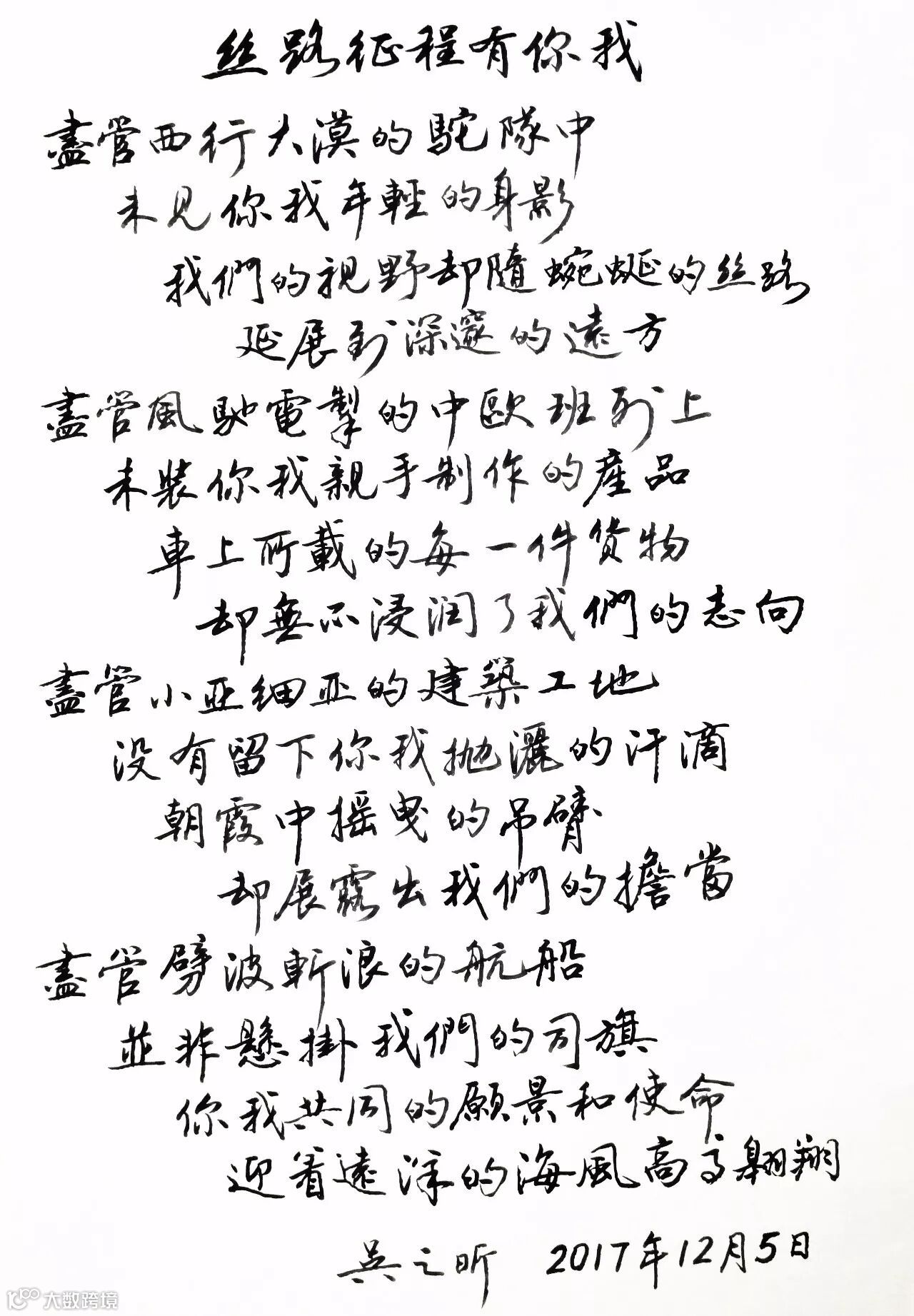 “如果你也正在为‘一带一路’伟业默默奉献,无论是冲锋陷阵还是运筹帷幄,无论是培训支持还是咨询谋划,无论是媒体出版还是金融保险,希望你的心与我共鸣!”