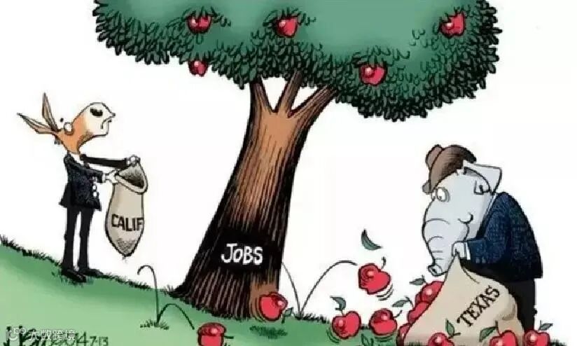 德州是美国50州中面积和人口都位居第二的大州,经济发展势头强劲,人口增长快。对一部分出走加州的公司来说,德州政府的热情好客、慷慨大方,是他们以前在西海岸难以想象的。和苛捐杂税一堆、租金及人力成本贵上天的加州一比,为企业开出减税等福利的德州看起来就像是天堂。