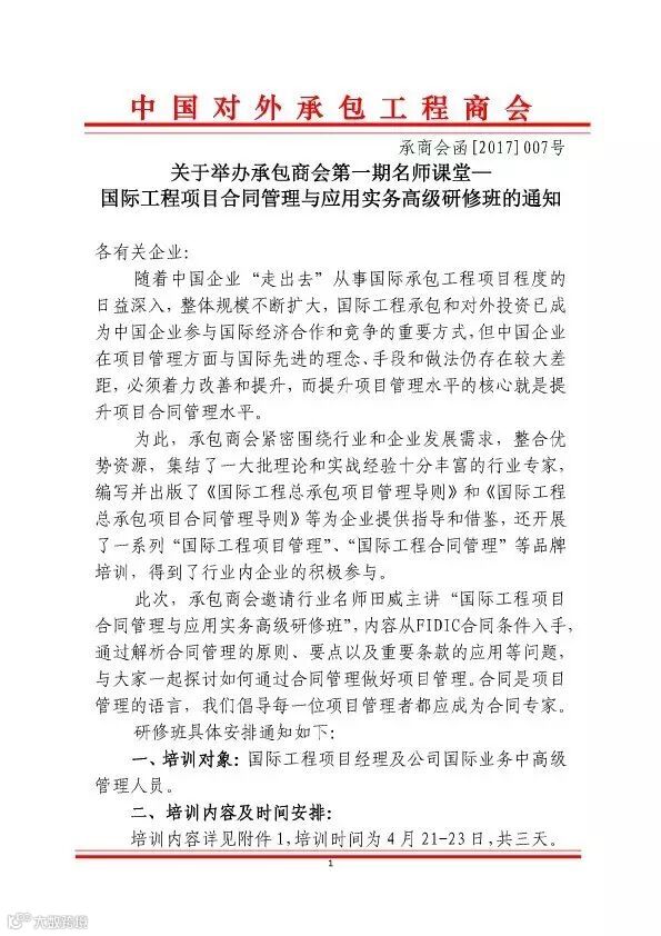为此,承包商会紧密围绕行业和企业发展需求,整合优势资源,集结了一大批理论和实战经验十分丰富的行业专家,编写并出版了《国际工程总承包项目管理导则》和《国际工程总承包项目合同管理导则》等为企业提供指导和借鉴,还开展了一系列“国际工程项目管理”、“国际工程合同管理”等品牌培训,得到了行业内企业的积极参与。