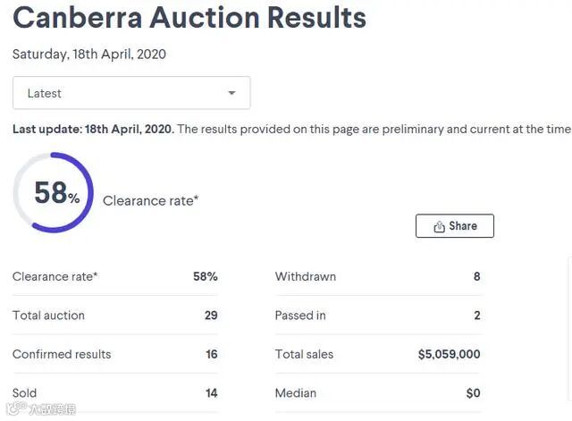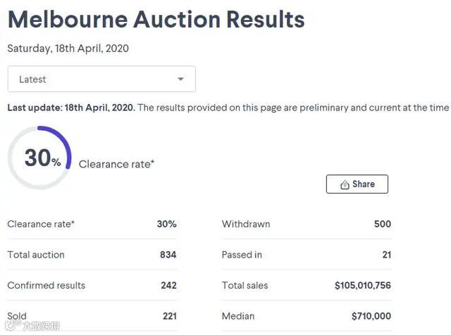 清盘率30%,售出总价$105,010,756澳元,中位价$710,000澳元。