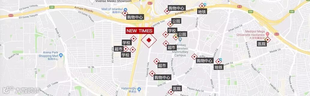 项目位置:位于伊斯坦布尔欧洲区最大交通枢纽处,紧邻E5公路,300米地铁口,距离欧洲最大的商场500米,距离伊斯坦布尔最大的批发市场1000米。
