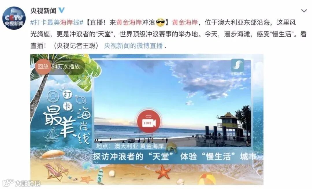 前不久,央视新闻也没能抵挡住黄金海岸的诱惑,不仅大幅报道,还专门为ta开了一期微博直播专栏,带国内观众领略了一把黄金海岸的风采。