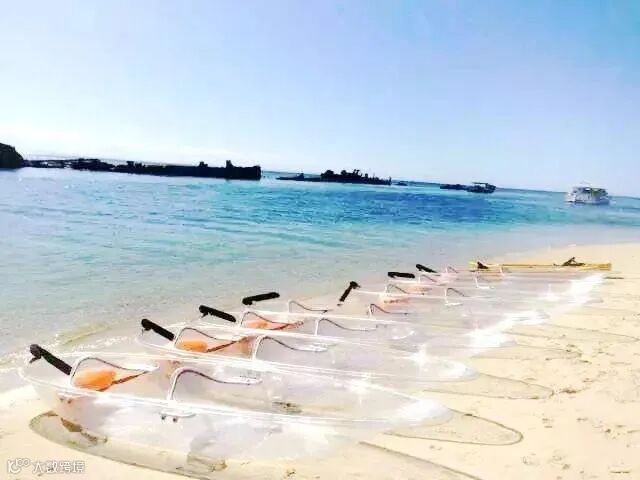 除了浮潜,参加透明底划艇也很有意思哦!整只船都是透明的,漂浮在海上时,可以清楚地看见海底世界。