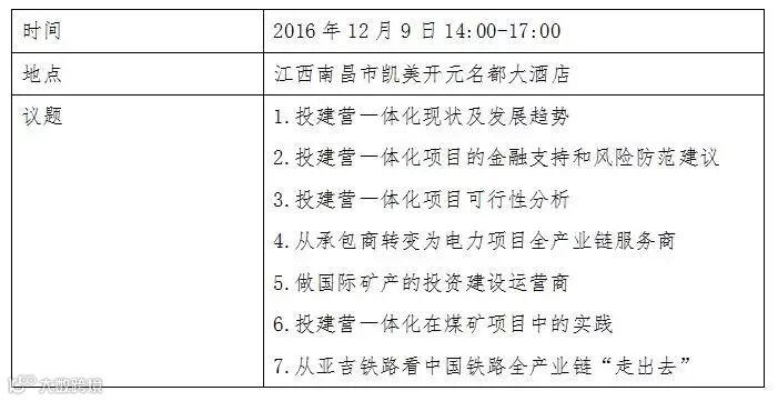 国际工程与劳务杂志 论坛邀请专家、学者和金融机构领导就 “如何协调规划设计、投融资、建造、运营维护等方面的竞争优势,建立良好运转的服务链联动机制,向客户提供高品质项目和个性化服务”进行探讨;分享各自在推动和运作“投建营一体化”项目方面的经验和心得,为行业企业今后推进类似项目提供宝贵参考。