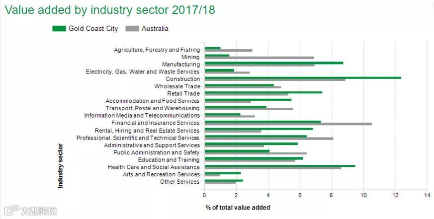 2017到2018年,黄金海岸产业总值为571亿澳元,几大产业齐头并进,成为了支撑黄金海岸成为南半球商业中心的底气!