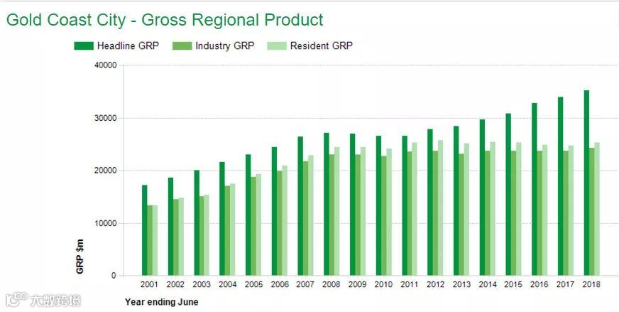 从2011年开始,黄金海岸年GDP增幅强劲,超昆士兰州一大截,成为澳洲成长最快的地区。2018年,黄金海岸的地区生产总值达到353亿澳元,折合人民币近1800亿!