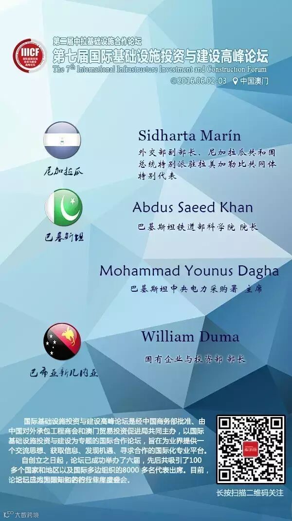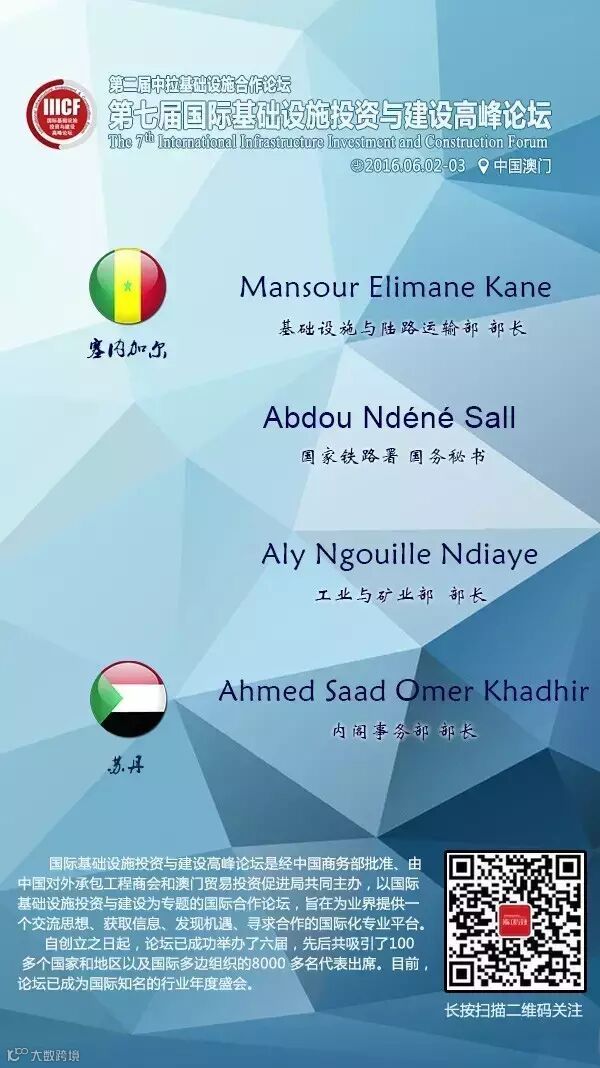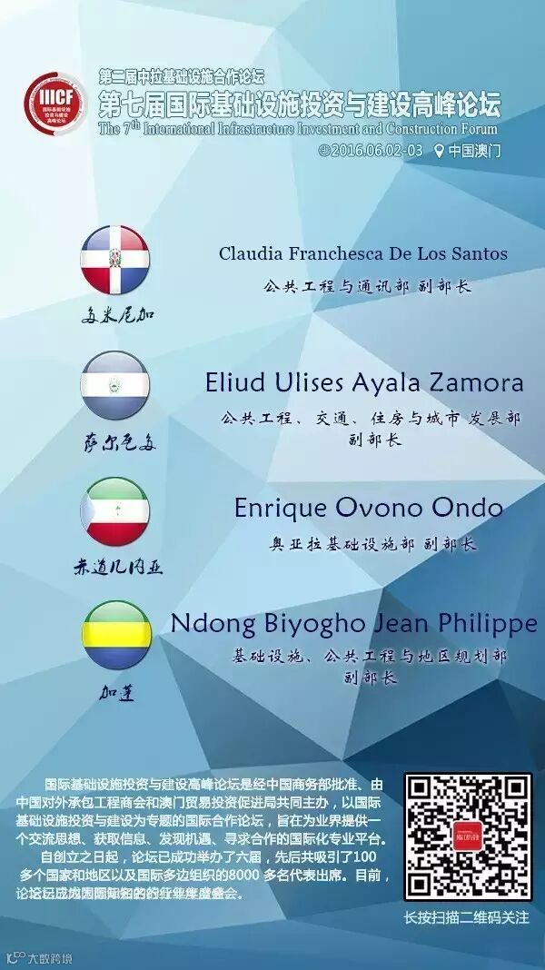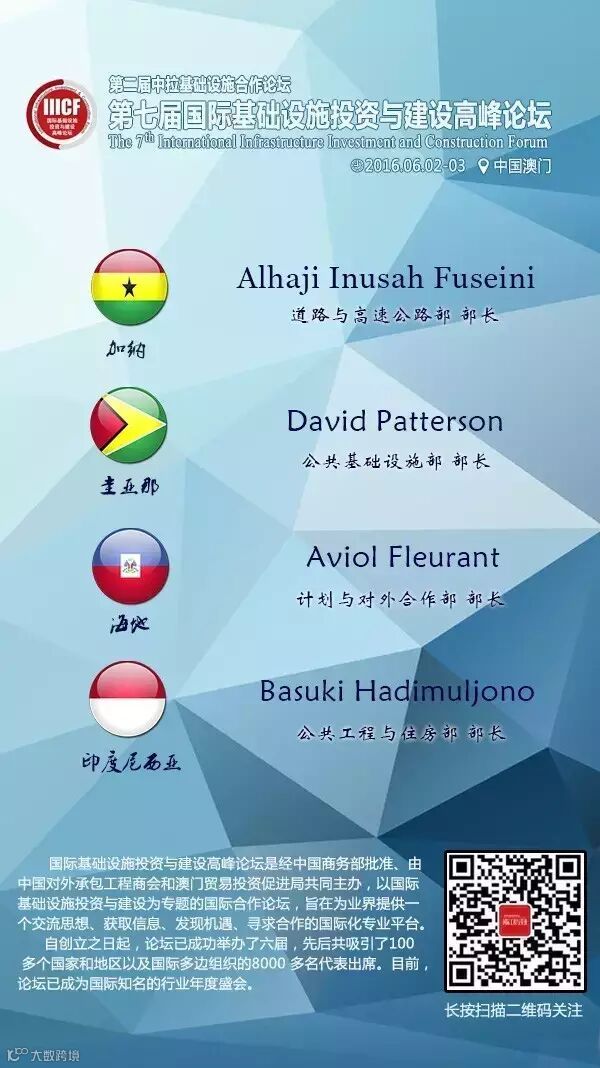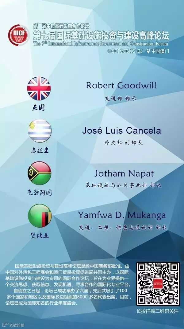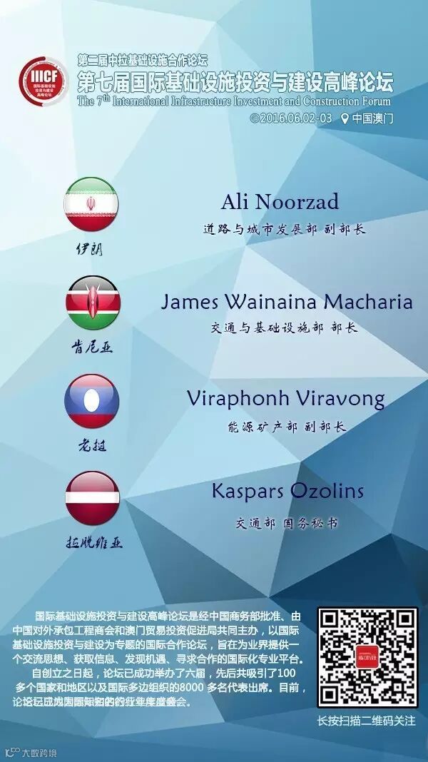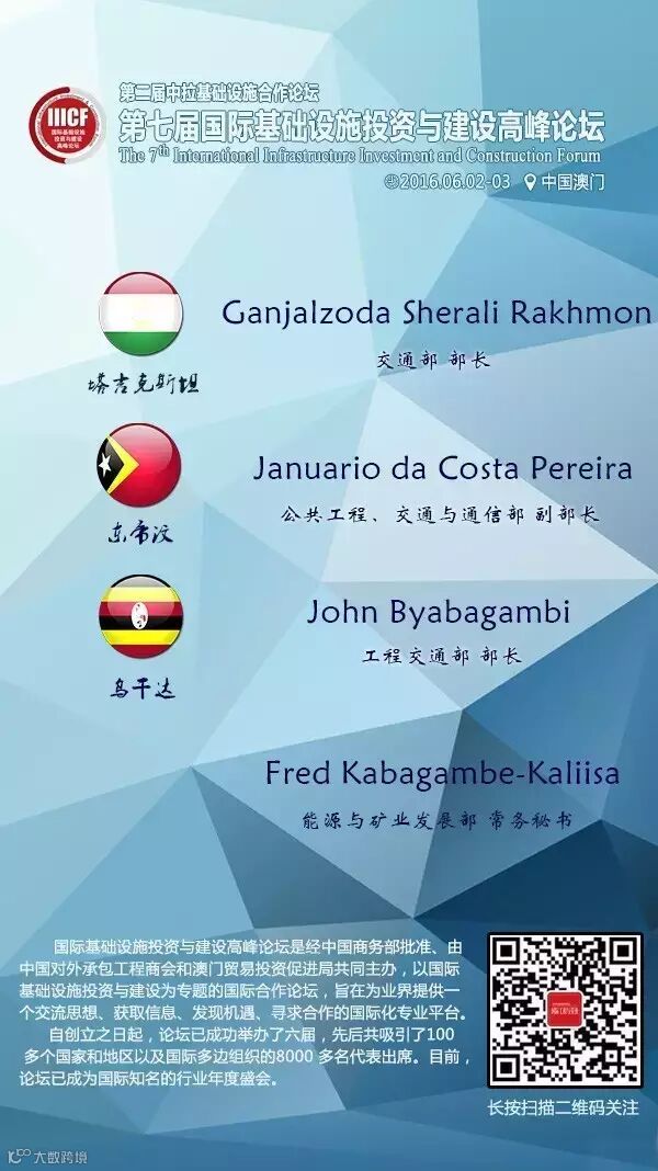 第七届国际基础设施投资与建设高峰论坛部长级嘉宾抢先看