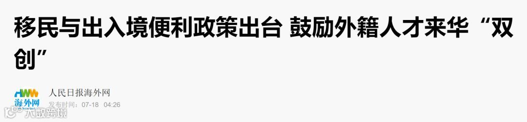7月17日,中国宣布在全国范围内推广促进12条移民与出入境便利政策。