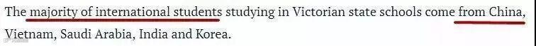 维州是澳洲最知名的国际学生留学目的地,目前在维州公立学校里有5000名左右的全额付费国际学生,其中中国、越南、沙特、印度和韩国的学生占了大多数。