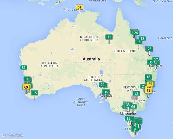 再来看看澳洲的空气指数!