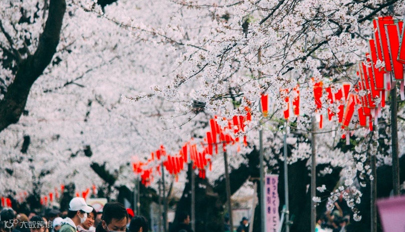 上野公园是东京人气第一的赏樱打卡地,公园里拥有多达1200棵的樱花树,每到樱花盛开的时候,这里都会举办“樱花祭”。