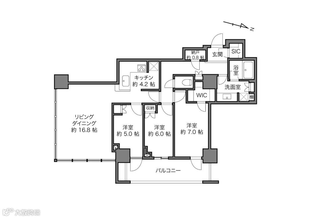面积:2008年5月建,31层共49层,3LDK+WIC,房产面积88.63平米,阳台面积10.64平米;