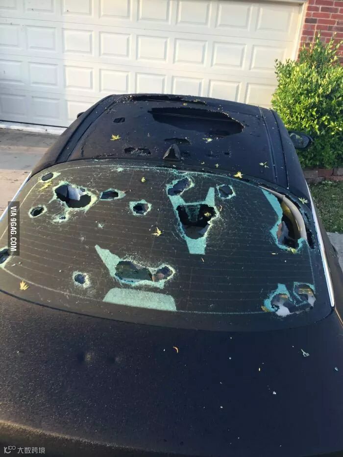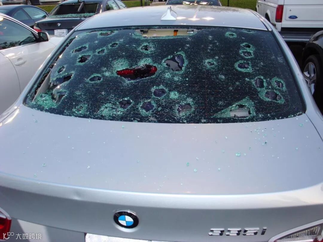 这两场冰雹之后,停在外面的汽车怎么样了呢?