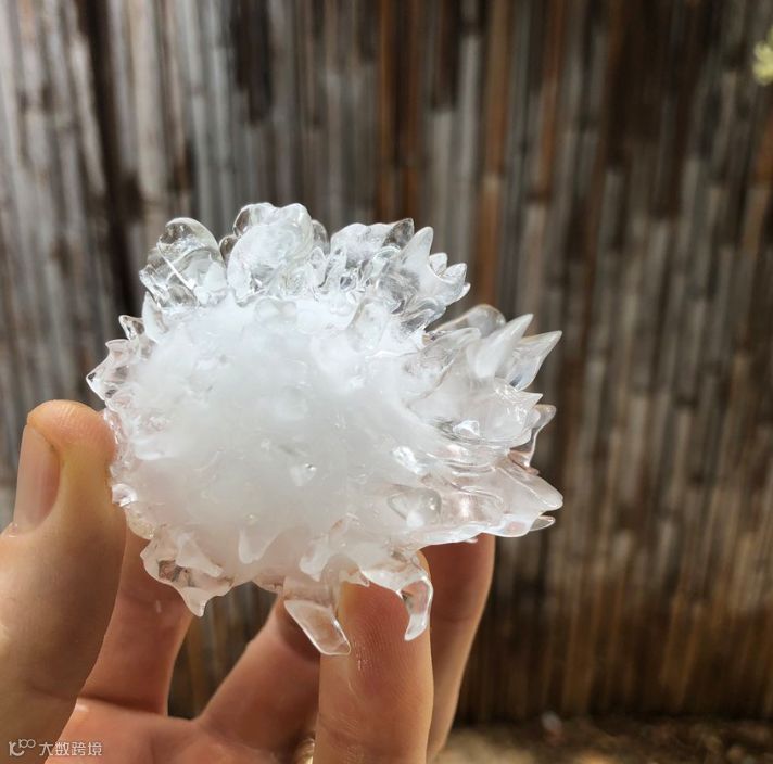 最夸张的是,有的冰雹表面很不规则,布满了凸起和尖刺...这哪是冰雹啊,简直是人间凶器!