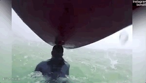 一些冲浪爱好者开心了,一直以为冲浪板只能冲浪,现在发现了另一个作用,还能挡冰雹...