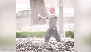 但是几分钟后,这些人笑不起来了,的确,雨势没有超乎想象,但是随着暴雨冲击地面的冰雹却让人苦不堪言...