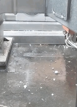 有一位小伙伴拍下了这样一幕,冰雹砸在水坑里的感觉,好像一枚枚子弹射击一般,冲击力可想而知。