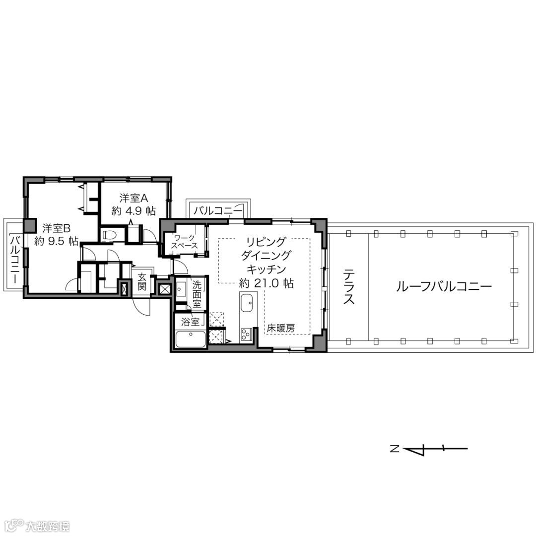 面积:1978年10月建,6层共6层,2LDK+ワークスペース,房产面积85.50平米(PS・MB含む),阳台面积4.64平米,顶层阳台面积54.56平米;