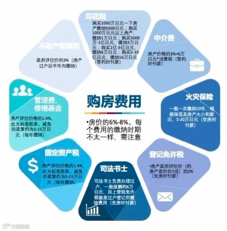 通常在日本买房所要花费的资金=房子本身的价格+买房时所花的各项费用所组成,各项费用约为房款的6%-8%。如果你想买一栋2,000万日元(约120万元人民币)的房子,需要准备2,120万-2,160万日元(127万-129万元人民币)。