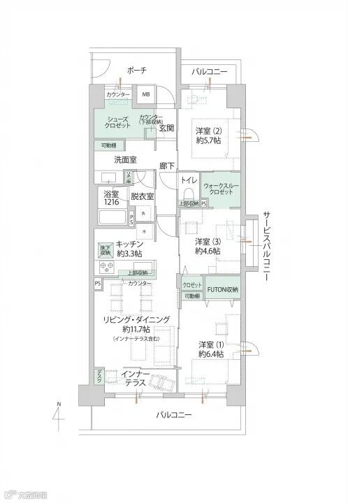 面积:1998年2月建,1层,3LDK,房产面积76.68平米,阳台面积11.20平米,南向;