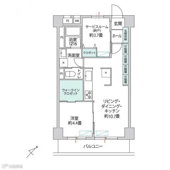 面积:1982年1月建,2层共9层,1LDK+S(納戸),房产面积49.68平米,南东向;