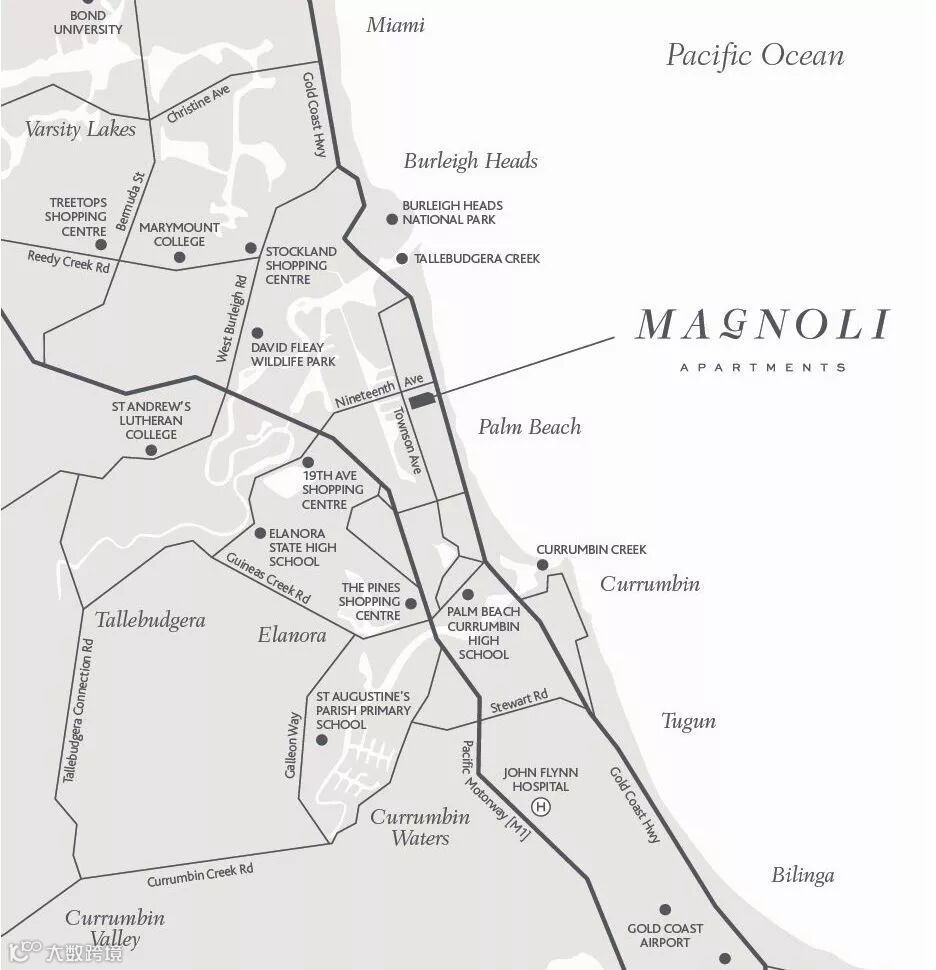Magnoli位于黄金海岸南部Burleigh Heads国家公园的尽头棕榈海滩,其享有无与伦比的自然环境优势与黄金海岸南部的发展契机。棕榈海滩也是当地人非常喜欢的一个地区,设有各项生活所需的配套设施。从理发店到面包房、咖啡厅应有尽有;项目周边还有多个购物中心可供您选择。