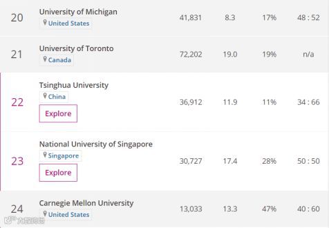 2、清华首次超越新加坡国立大学,成为亚洲第一