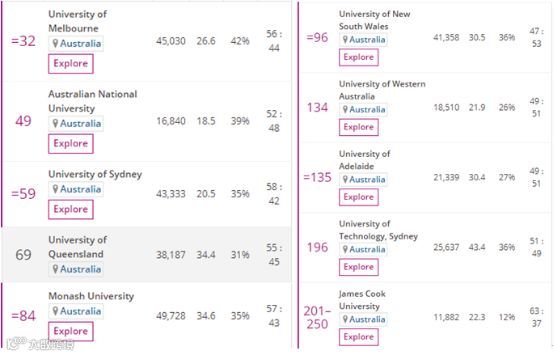 西澳大学、阿德莱德大学、悉尼科技大学和詹姆士库克大学紧随其后。