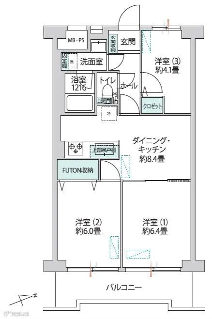 面积:1983年6月建,5层,3DK,房产面积54.88平米,阳台面积7.85平米,南东向;